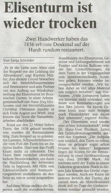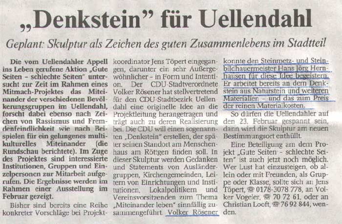 Pressemitteilung in der Wuppertaler Rundschau vom Mittwoch, 12. Dez.2001
